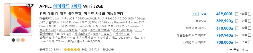 일단 아이패드 중 기본 모델이기 때문에 가격도 그나마 가장 저렴한 편이고