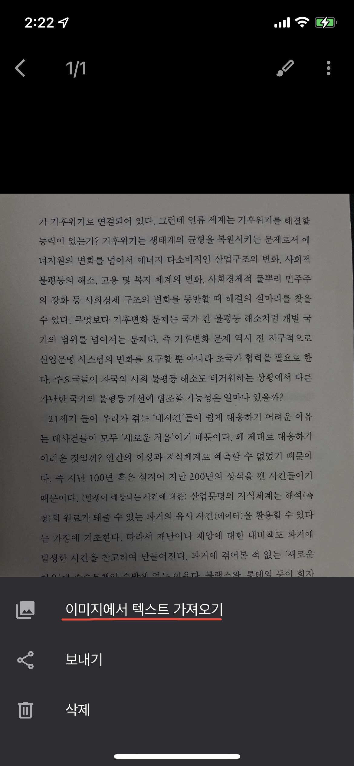 3. 텍스트를 추출하고 싶은 사진을 준비하고 사진을 누르면 위 사진처럼 준비가 완료됩니다.