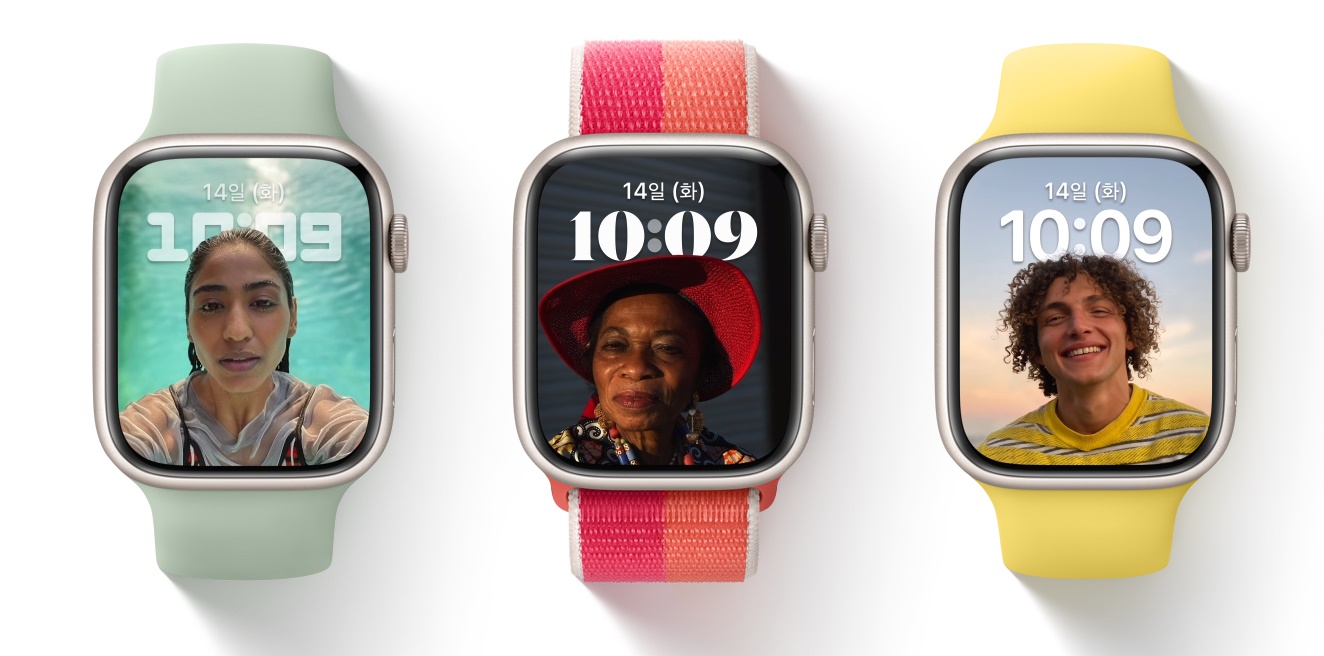 원래도 이런식으로 인물 사진 페이스 라는 기능이 있었는데 이 기능은 애플워치의 워치 페이스를 인물 사진 모드로 찍은 사진으로 적용할 수 있게 해주는 기능인데 그냥 평범하다고 생각하실 수 있는 기능이지만 사진에서 보이시다 시피 인물사진에서 누끼가 따져있는 피사체를 시계 위로 올려서 이쁘게 페이스를 꾸미는 것이 가능한 기능인데요.