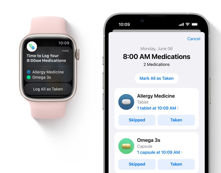 마지막은 복용약이라는 기능인데 비타인이나 영양제를 주기적으로 섭취하시는 분들에게 도움이 될 만한 기능입니다. 이 기능은 복용하고 있는 약을 건강앱에 직접 등록해서 애플워치를 통해 약을 복용해야 하는 시간에 알림을 받도록 설정할 수 있습니다. 또 바로 지원할지 안 할지 확실한 기능은 아니지만 등록된 약 사이에 동시 복용시 부작용이 있는 약이 있다면 알려주는 기능도 추가 된다고 합니다.